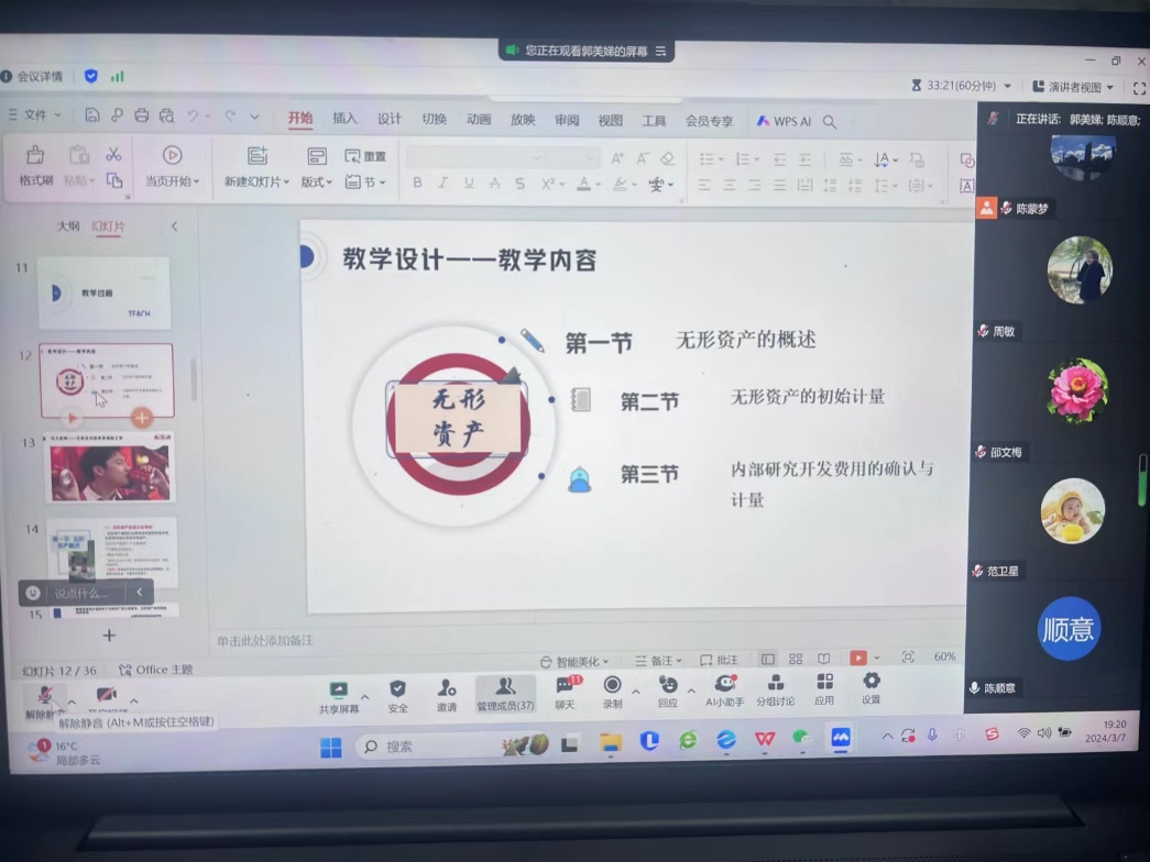 随后,上学期已经经历过磨课的郭美娣老师分享了自己的经验。她详细介绍了磨课活动的整个流程,包括需要准备的文件、文件要求以及说课和教学展示环节的注意事项。郭老师还结合自己的磨课经历,分享了在磨课过程中遇到的问题和解决方法,并展示了她的磨课PPT,为其他老师提供了宝贵的参考。