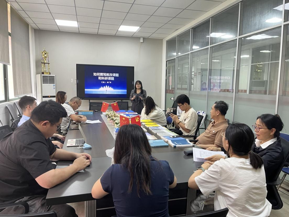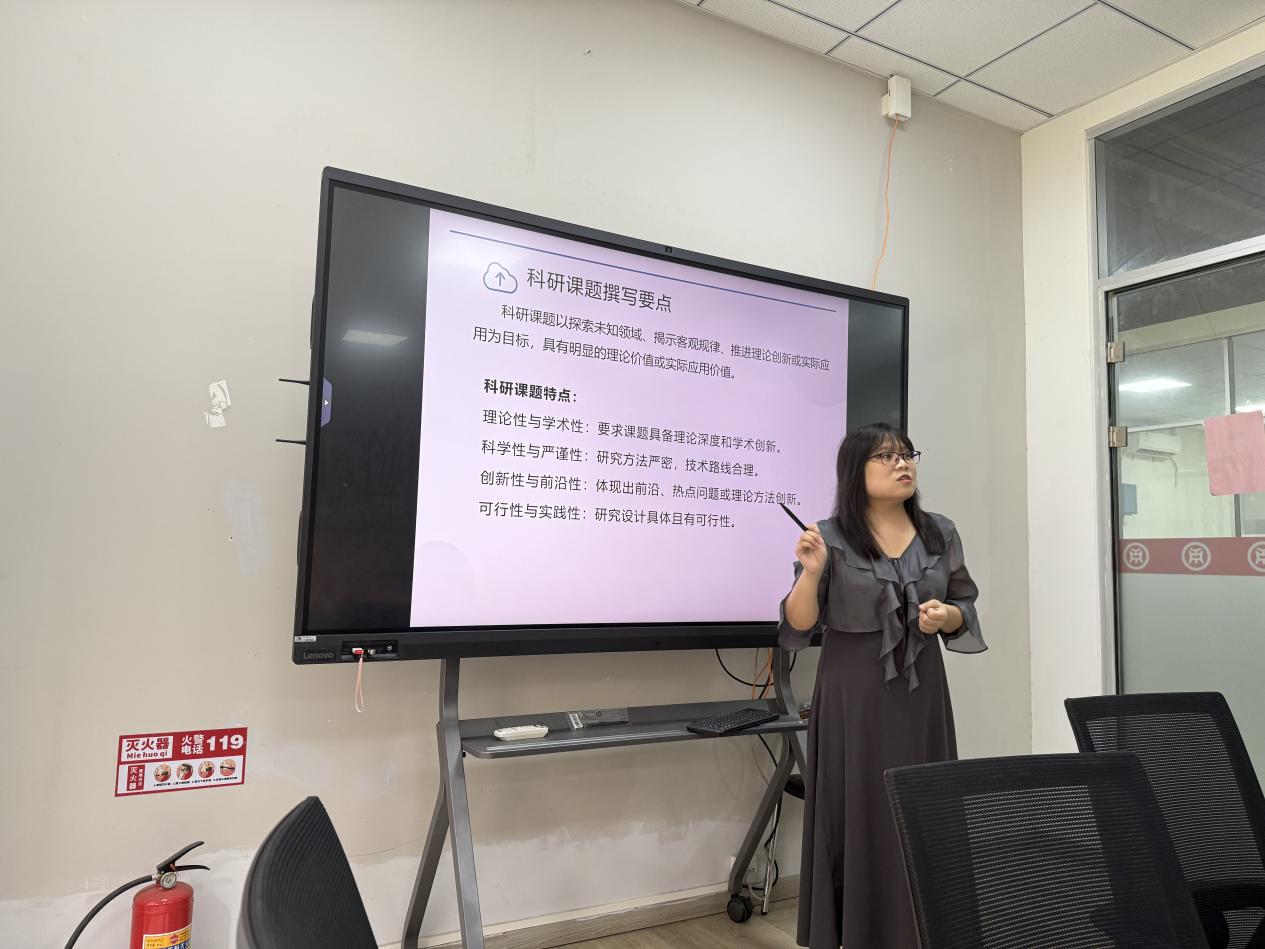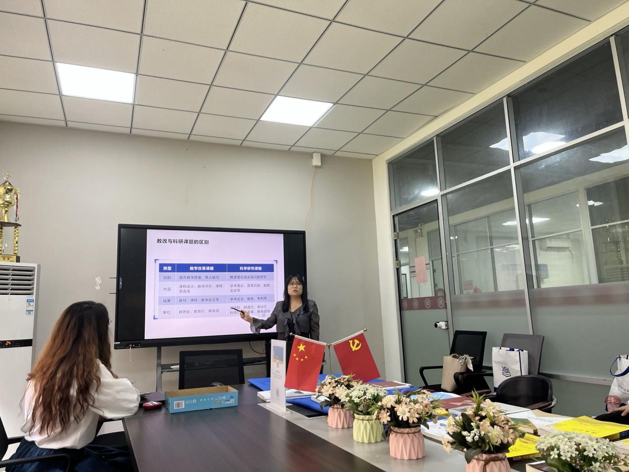 杨广莉副教授还给出了宝贵的建议与总结。她提醒教师们根据评职称需求选择课题级别,提前准备申报书,预留专家评审与修改时间,避免因学校通知紧急导致内容仓促。她还建议教师们整合前期研究成果,教改课题可联动教学改革实践,科研课题可结合未发表论文,提高课题申报的成功率。