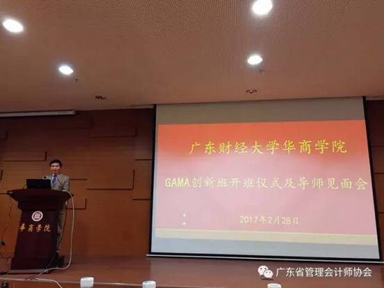 2017年2月28日上午,春暖花开,阳光明媚。广东省管理会计师协会与广东财经大学华商学院合作的GAMA创新班开班仪式暨导师见面会在华商学院学术报告厅隆重举行。GAMA创新班导师王华、林斌、胡玉明、刘中华教授和蔡祥、漆江娜、聂新军、刘善敏、张程睿副教授,华商学院陈玉川院长、郭银华副院长和beat365在线体育官网登录入口马玉珍院长出席了开班仪式。开班仪式由郭银华副院长主持。