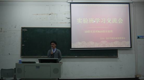 3月15日2013级实验班同学代表与2015级实验班全体同学进行经验交流,共话如何有效度过大学生活。