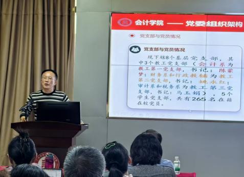 会议伊始,刘善球书记详细介绍了beat365在线体育官网登录入口党委的组织架构,强调了全体教职工了解党委组织架构和工作分工的重要性。紧接着,刘书记回顾了近期党建工作开展情况,明确下一步工作重点,即党建工作要助力标杆院系的建设,推动标杆支部建设和双带头人工作,并结合实际情况提出了具体的建设目标。此外,刘书记还提到了要强化党员教育管理工作以及规范党组织活动考勤制度。最后,刘书记强调了“三会一课”的重要性,要求各支部围绕合格评估工作,加强对党员的思想教育,关心党员思想动态,促进学生学风养成。他希望全体党员要高度重视意识形态风险防范,始终保持高度的政治敏锐性和责任感,充分发挥党员先锋模范作用,为华商学院的合格评估和各项事业发展贡献智慧和力量。