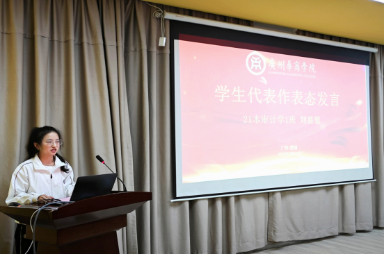 发言之后,带领全体参会学生进行宣誓:作为新时代青年,牢记时代使命,刻苦学习,遵纪守时,不迟到不早退,上课认真听讲;团结向上,积极参加志愿活动,全面发展,立志成才,争做四有新人。秉承优良传统,勤俭节约,爱护环境,讲究卫生,举止文明,做一个合格大学生。