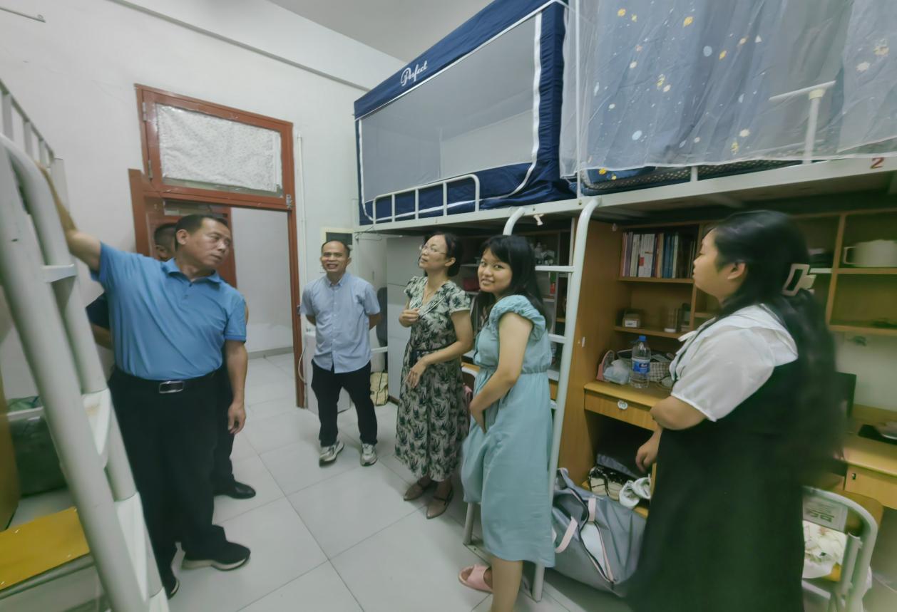 8月30日,beat365在线体育官网登录入口院长姚凤民,副院长陈少鸿、周书域,学工办副主任杨烨瀚及全体22级辅导员,共同展开了一场温馨而深入的宿舍走访之旅,足迹遍及广州校区的西17、西3、西6和西8等学生宿舍,旨在关怀与了解肇庆校区迁至广州校区的22级学子们的生活适应情况,彰显了学校对学生福祉的深切关注与宿舍管理的严谨态度。