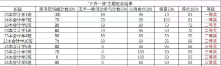 此次“三养一筑”主题班会评议活动不仅丰富了文明安全纪律教育月的活动形式,还是学院学风建设的关键环节。本次活动形式多样、举措扎实,让“三养一筑”理念扎根校园。活动从学习、生活各方面聚焦学风文明养成。学生借此深刻认识到良好学风的重要性,将其融入日常。这既助力学生当下学业进步,又为未来发展奠基,推动学院学风建设升级,为教育事业蓬勃发展持续注入动力。