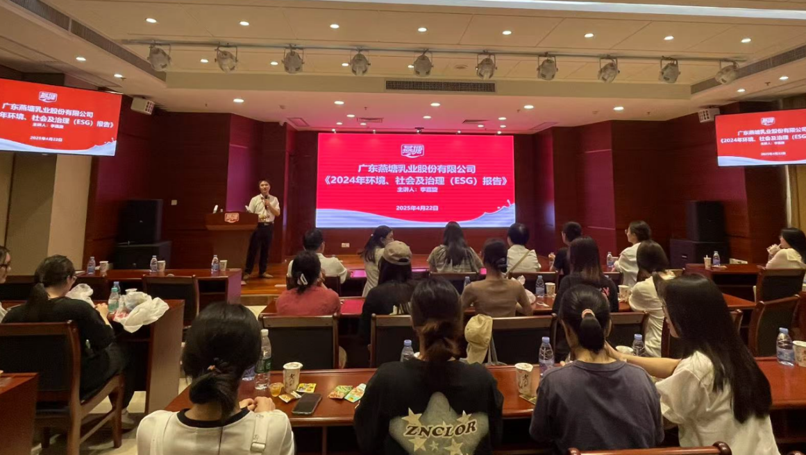 在可持续发展展厅,燕塘乳业李总通过公司ESG报告进一步向大家介绍了公司ESG实践发展路径,例如绿色牧场建设、低碳包装研发、强化数字赋能等,财务报表中的环境成本与碳资产,背后是企业对可持续发展的战略性投入。