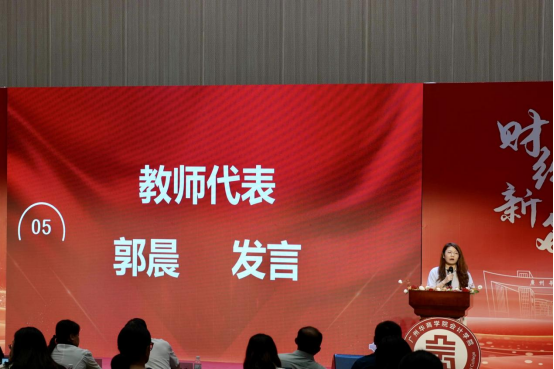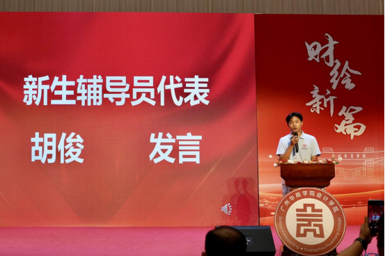 紧接着,教师代表郭晨老师结合自身教学经验,以“成长关键词”为核心分享:“专业打底”是根本,即便智能技术普及,会计基础、财务管理等核心知识仍是竞争力;“拥抱智能”是方向,学院已更新财务大数据分析、智能beat365在线体育官网登录入口统应用等课程,建议新生多熟悉软件逻辑与智能核查方法;“湾区借力+勇于试错”是路径,鼓励大家依托大湾区财会产业优势,通过实习、实践明确发展方向。