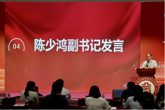 随后,陈少鸿副书记对新生的到来表示热烈欢迎,他重点解读当前财会领域“数字化、智能化转型加速”的趋势,并从三方面分享思考:在“智能变革”中,要结合会计、财务管理等专业方向主动适配,筑牢专业能力;在“安全守护”中,既要保障校园人身、财产、信息安全,更要守住未来职业的“专业安全”,坚守财会诚信底线;在“和谐共处”中,珍惜宿舍、班级等集体生活机会,在协作中学会成长。