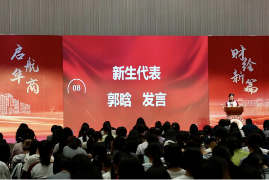 新生代表郭晗随后代表全体2025级新生发言,她表达了对大学生活的热切期待,明确表示认可会计专业的发展价值,并承诺未来四年将扎实学好专业知识,同时主动培养财会案例分析、财务软件操作等相关兴趣,始终恪守“厚德、励志、博学、创新”的校训,以尊师重学的态度、持之以恒的努力,不断提升综合素质。