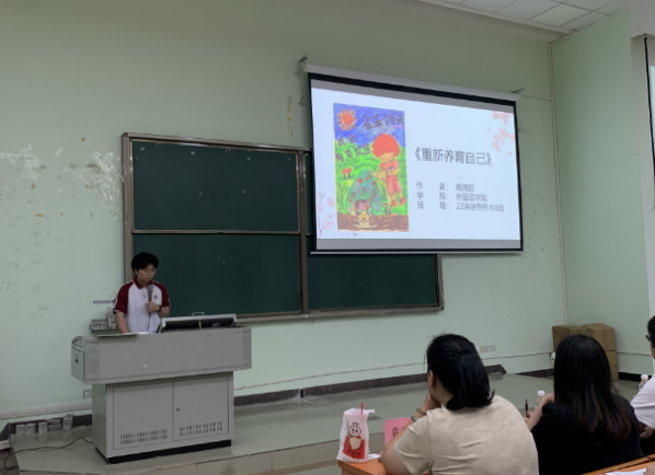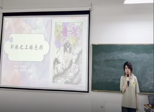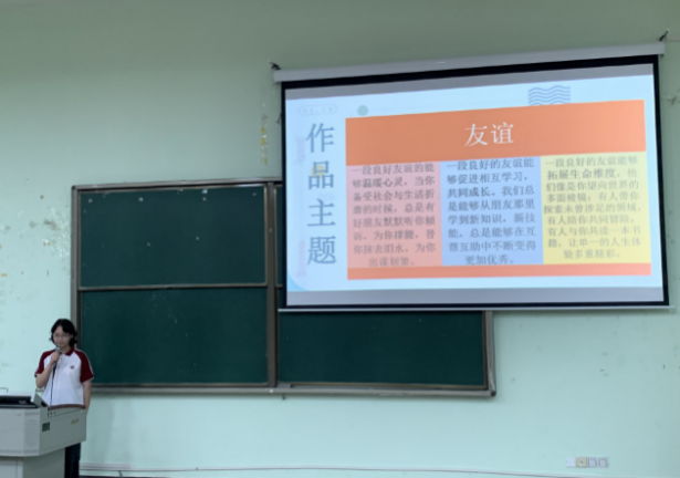 决赛现场,选手们通过精心准备的PPT,向观众们展示了他们的作品。他们围绕自我成长、心理健康、生活感悟等主题展开创作,用画笔描绘出对世界的独特理解,从灵感的萌芽到作品的完成,详细分享了创作过程中的点滴,无论是色彩的选择还是画面的布局,都体现了他们对艺术的执着追求。独特的绘画技巧、新颖的表现手法,以及对主题的独到解读,让每一幅作品都散发着别样的魅力,展现了选手们丰富的想象力和创造力。