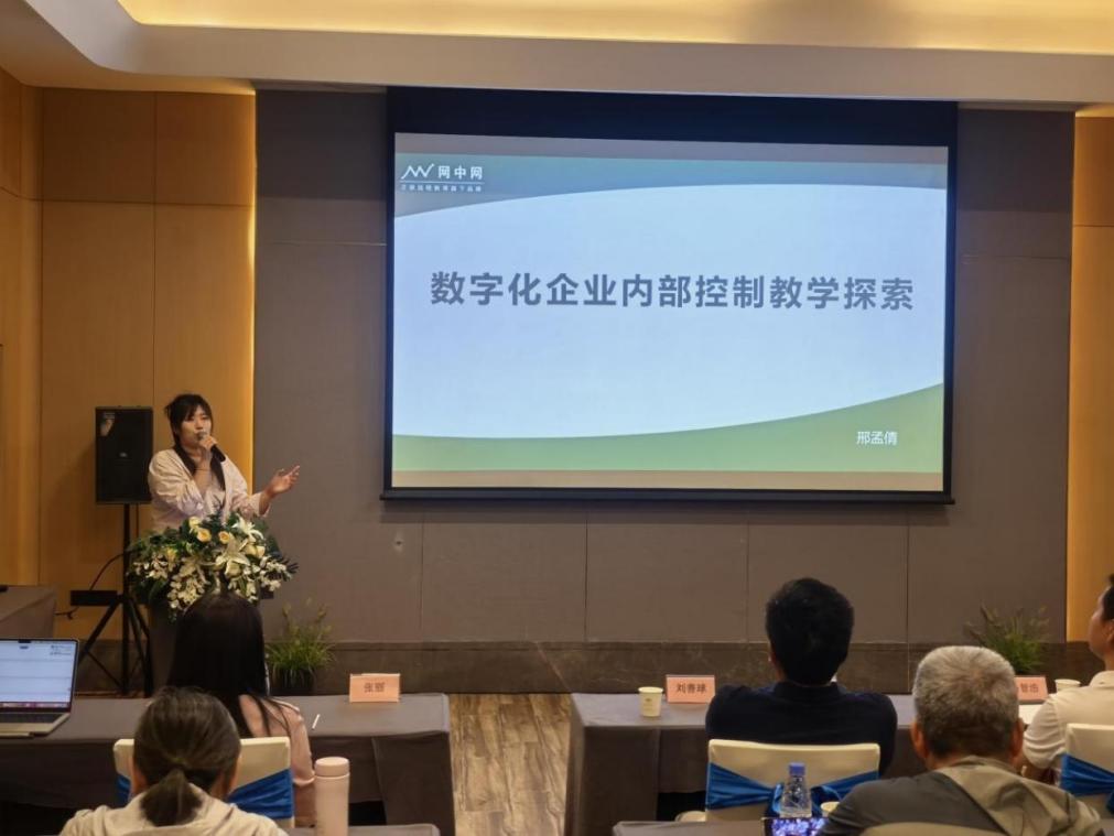 厦门网中网软件有限公司研发经理邢孟倩以《数字化企业内部控制教学探索》为主题报告。围绕“企业需要怎样的内控人才、企业如何开展内部控制、数字化内控的优势所在、企业内部控制的教学实践”四大关键维度,系统且深入地分享了数字化企业内部控制教学的实践经验。她指出,在信息技术蓬勃发展的当下,审计内控体系的数字化转型已然成为企业提升审计管理效率及风险控制能力的关键路径,这不仅为企业高效运营筑牢根基,更为审计教学指明了培养复合型人才的方向。她强调,审计教学应紧密结合实际需求,深化教学改革,以培养更多适应数字化时代的高素质审计人才。随后,邢经理对数字化企业内部控制综合教学平台进行了实操展示,展现了内部控制课程智能化改革的新举措。