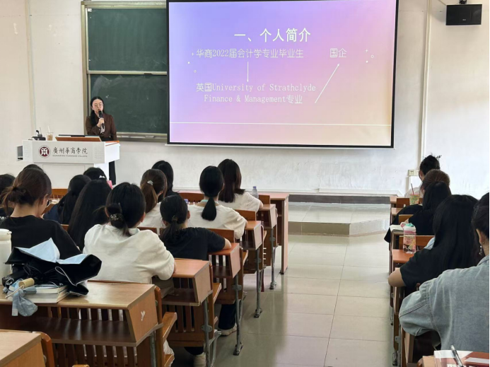 在二十周年校庆的热烈氛围中,华商beat365在线体育官网登录入口第五期“会计校友大讲坛”系列活动——“星光•考研分享会”于2024年11月12日14:30-15:45在励志楼C505成功举办。本次分享会以“另辟蹊径,海外赛道绽光彩”为主题,由我校校友涂瑾萱师姐主讲,为有意探索海外升学道路的同学带来了一场精彩纷呈的知识盛宴。