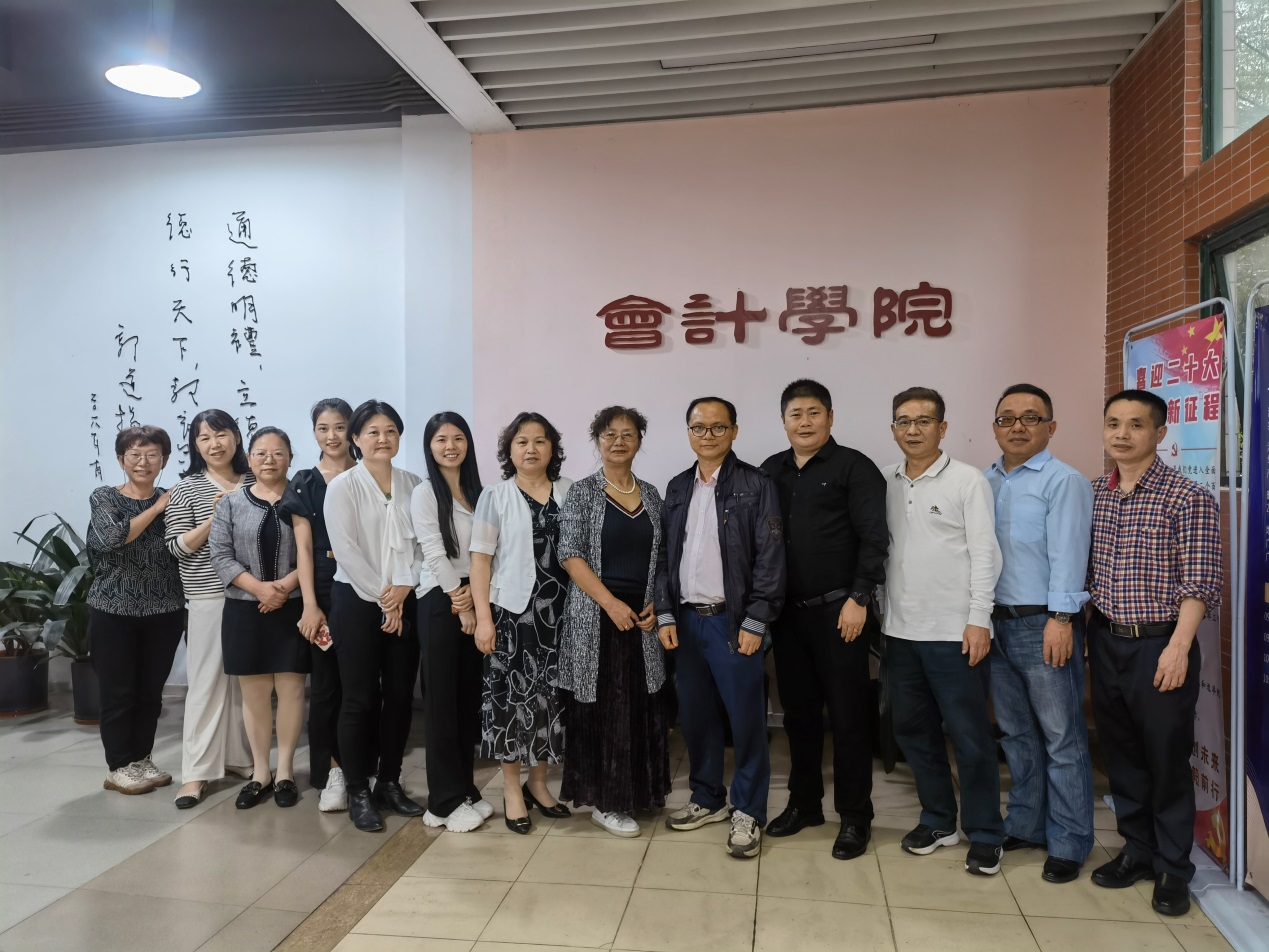 2023年4月6日,广州商学院beat365在线体育官网登录入口副院长陈德余,会计专业负责人彭文华,审计专业负责人杨玉国,管理会计教研室主任宋敏,实践教研室主任范时云,办公室主任罗静,教务员陈婉婷一行来beat365交流访问,beat365在线体育官网登录入口副院长杨旻、周书域,beat365在线体育官网登录入口主任崔莉,审计系主任郭秀珍,税务系主任张翠凤,财务系副主任姚永红,华商云会计产业学院常务副院长杨咏梅,教务办主任宋超在学院会议室接待了广州商学院beat365在线体育官网登录入口领导及老师一行并参加交流会,交流会由副院长周书域主持。