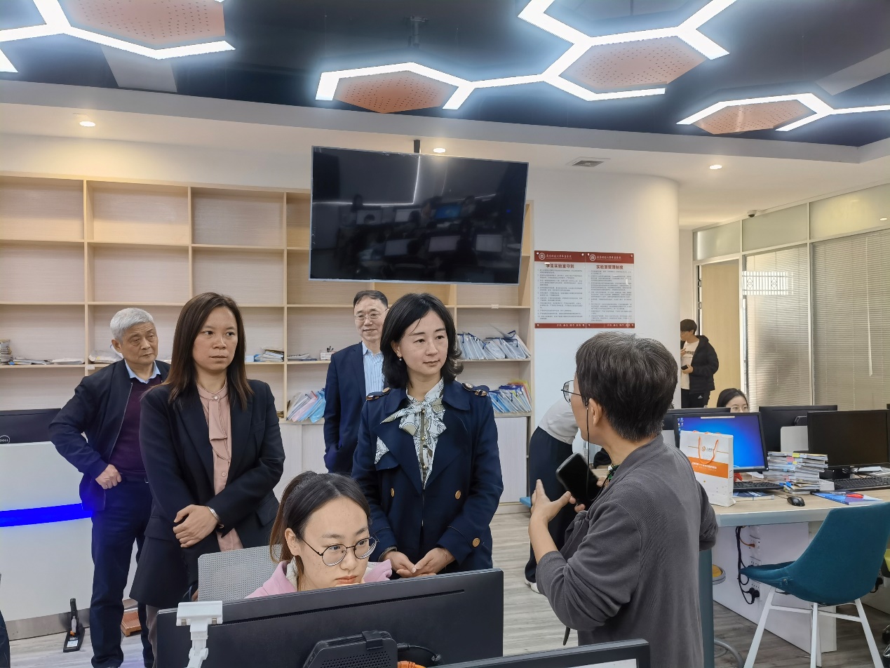 交流会后,陈美华副校长陪同王兰副校长等领导参观了我校跨专业仿真实习平台、华商云会计产业学院、大数据及人工智能交互体验中心、数字金融实验中心等实验室,重点参观考察了华商云会计产业学院运营中心、财务共享服务中心、云会计实验室及beat365在线体育官网登录入口的课程实验室。