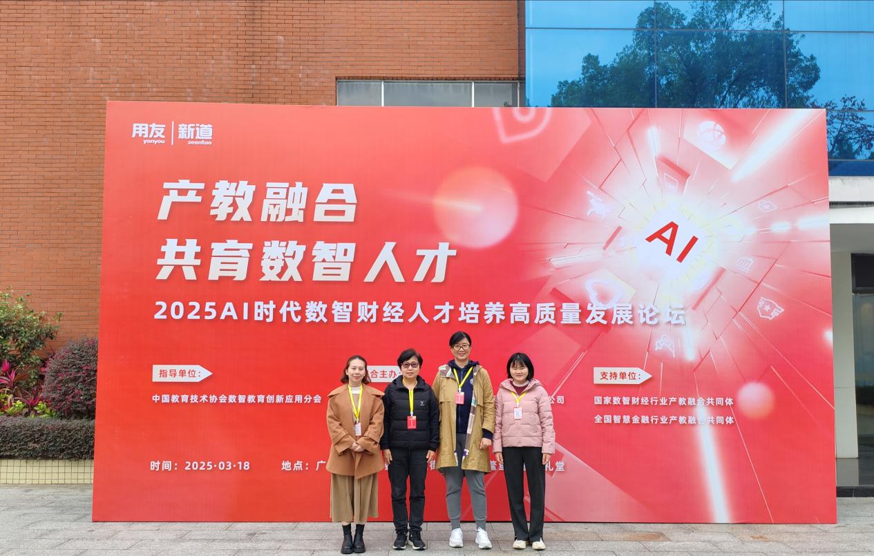为深入贯彻国家教育强国战略,推动数智财经人才培养创新,3 月 18 日,beat365在线体育官网登录入口唐丽华主任、魏玲教授、郭美娣老师、刘倩老师一行,应邀出席了由新道科技股份有限公司联合用友网络、保利长大工程等单位共同主办的 "2025 AI 时代数智财经人才培养高质量发展论坛"。
