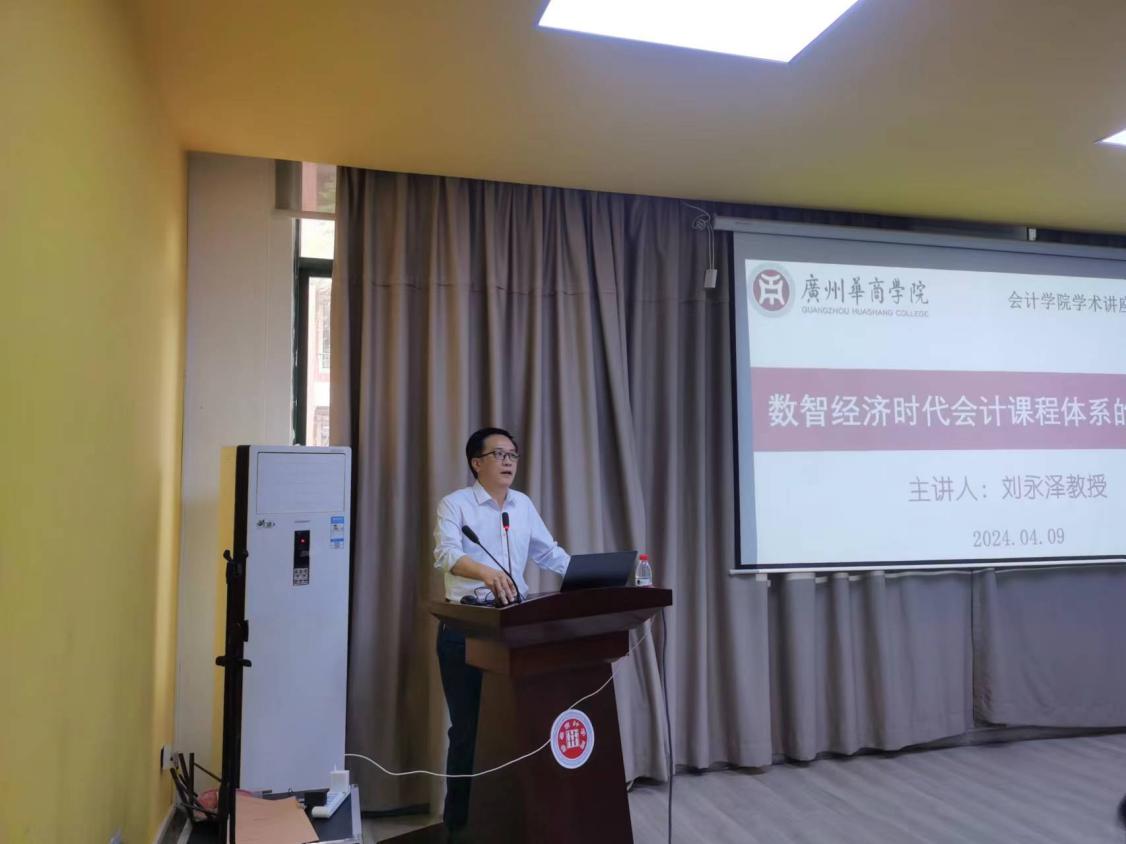 2024年4月9日下午2:30,中国会计学会原副会长,中国会计学会会计教育专业委员会原主任、原东北财经大学beat365在线体育官网登录入口院长、博士生导师、我校特聘教授刘永泽教授在beat365在线体育官网登录入口报告厅为beat365教师作了题为《数智经济时代会计课程体系的构建》学术讲座。