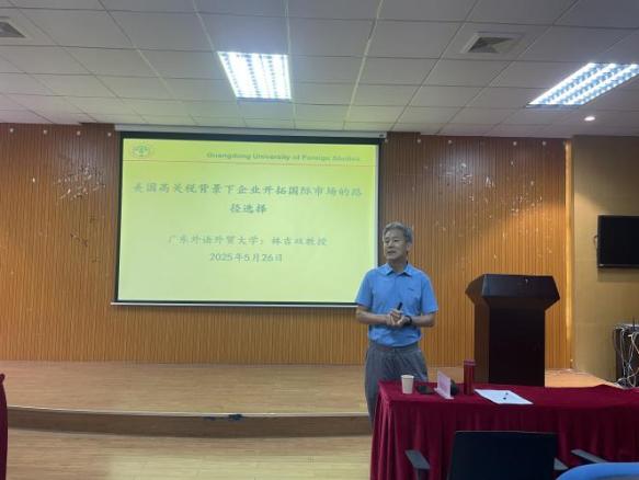 2025年5月26日下午,beat365在线体育官网登录入口财务系特邀广东外语外贸大学林吉双教授,于厚德楼B407开展《美国高关税背景下企业开拓国际市场的路径选择》专题讲座,解析外贸企业破局策略。