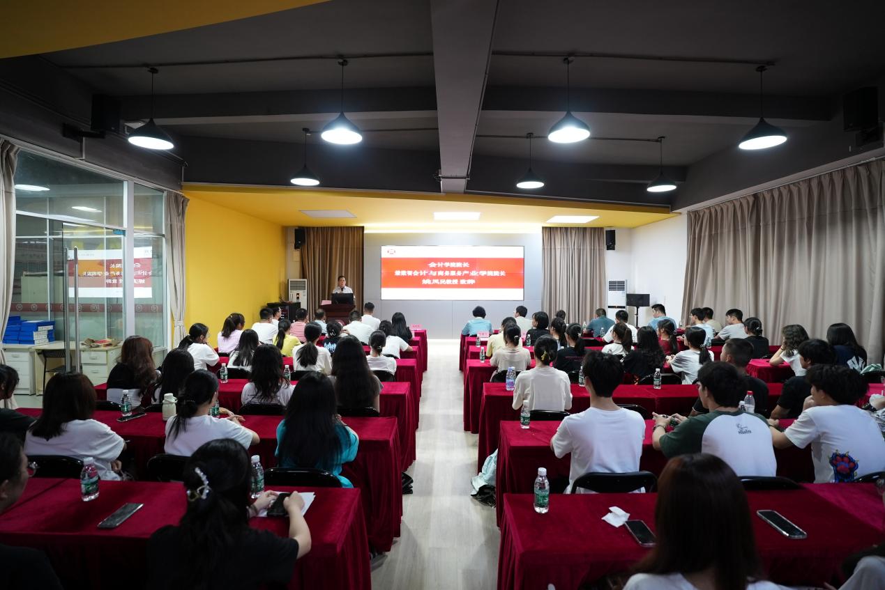 典礼先由beat365在线体育官网登录入口院长兼数智会计与商务服务产业学院院长姚凤民教授上台致辞。姚院长代表beat365在线体育官网登录入口全体教师欢迎新同学。强调产业班的成立是学院积极响应国家创新驱动发展战略、深化产教融合的重要举措。希望同学们珍惜机会,努力学习,成为华商智能会计的领头雁,发挥示范引领作用。随后,beat365在线体育官网登录入口产教办主任唐明琴教授发言。唐明琴教授强调智能管理会计产业班是beat365在线体育官网登录入口第一个示范班级,学校高度重视并给予支持。期望同学们能够秉持勤勉向学的态度,积极将大数据前沿技术与会计专业知识深度融合。充分借助这一零距离接触的优质平台,脚踏实地、稳扎稳打地掌握会计知识,在持续的探索与实践中砥砺前行,不断开拓进取,勇攀知识的高峰。接着新生代表麦楚颖同学上台发言。她以一名新时代青年的视角,表达了对智能管理会计产业班的无限憧憬和坚定信心。最后,产业学院企业教师代表,用友集团新道科技股份有限公司教学服务总监徐启超先生,为大家带来了精彩的产业实践分享。