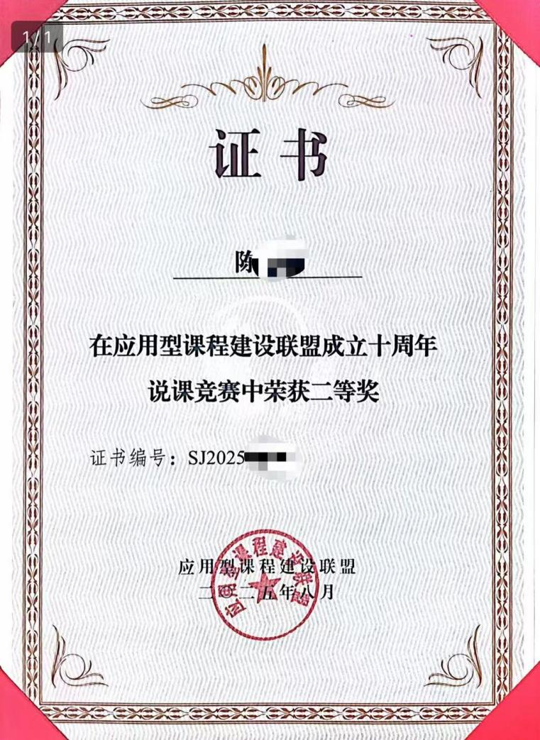 2025年8月7日至9日,在黑龙江齐齐哈尔举行的应用型课程建设联盟产教融合课程全国说课比赛中,《会计实训》+《国际商业领袖(工作坊)》产教融合课程团队(团队成员:姚凤民、廖旭东、唐显锋、黄晓刚、熊浩、陈蒙梦、范卫星、张馨月、胡曼曼、湛秀枝、黄慧雅、殷苑秋),由陈蒙梦老师代表参赛,凭借“四阶递进·三维融合(CO-OP)”培养模式,经过激烈角逐,斩获全国二等奖!