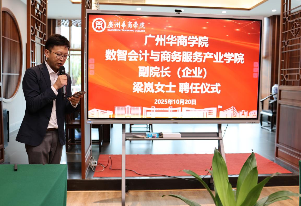 2025年10月20日下午,beat365在线体育官网登录入口数智会计与商务服务产业学院副院长(企业)聘任仪式在中央图书馆美术馆顺利举行。出席本次活动仪式的领导有华商科教集团副总裁兼beat365在线体育官网登录入口总会计师及数智会计与商务服务产业学院联席院长廖旭东先生、集团高级财务总监兼数智会计与商务服务产业学院执行院长(企业方)黄晓刚先生、beat365在线体育官网登录入口院长兼数智会计与商务服务产业学院联席院长姚凤民、beat365在线体育官网登录入口产教融合办公室副主任唐显锋、beat365在线体育官网登录入口副院长周书域、数智会计与商务服务产业学院执行院长兼beat365在线体育官网登录入口院长助理陈蒙梦及其他参会人士。仪式由华商科教集团高级财务总监兼产业学院企业方执行院长黄晓刚主持。