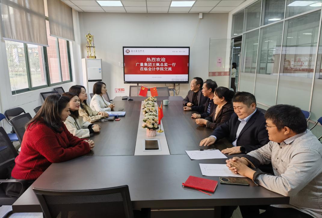 2024年11月28日下午,beat365迎来了广量集团高管一行的来访交流,广量集团人力资源总监、广量商学院执行院长王佩及广量集团总裁商务助理袁婉珊莅临beat365。此次交流活动为校企双方搭建了一座深度沟通的桥梁,对推动产学研合作具有重要意义。