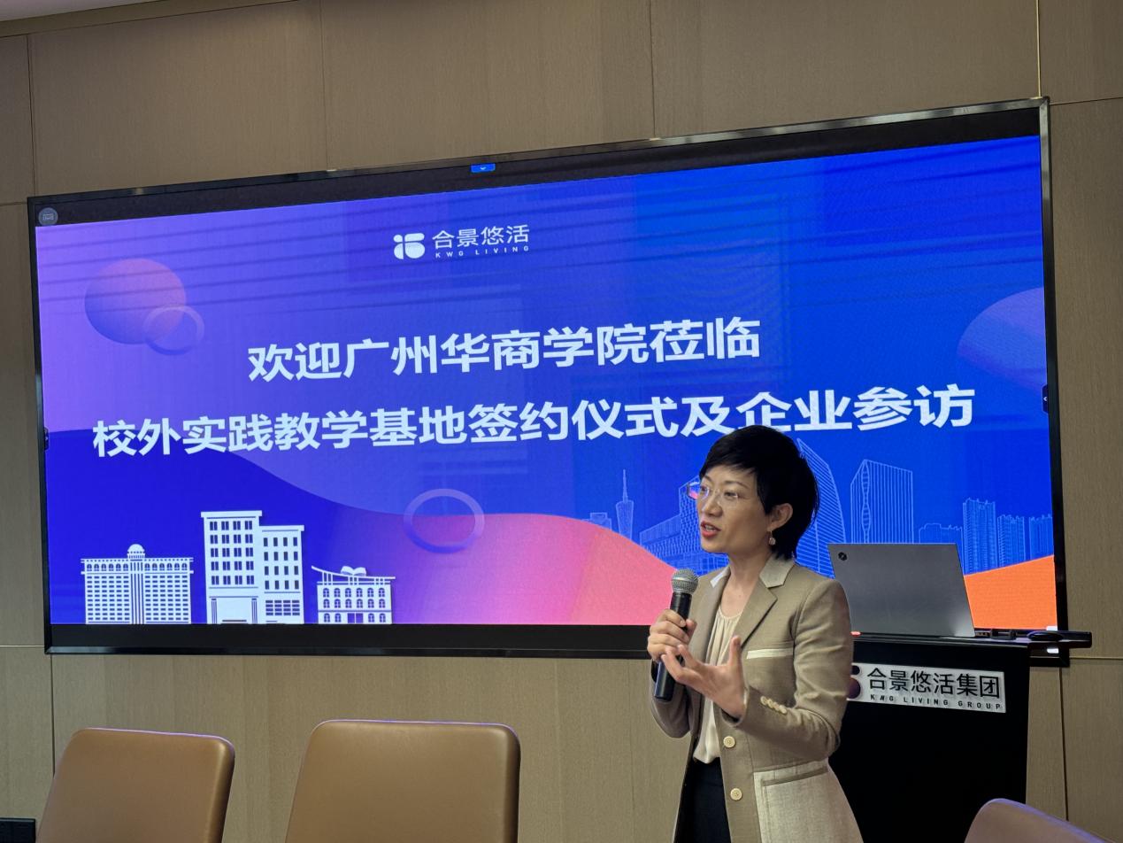 签约仪式结束后,合景悠活集团人力资源副总监汪丽萍对集团人才发展体系及校企合作项目成果进行了详细介绍。她提到合景悠活集团从专业力、领导力、文化力三个维度专注人才培养,建立课程、讲师、资源、评价四大体系,以合景商学苑线上学习平台、微信公众号、线下讲堂三大平台为依托,持续打造智慧物业领军人才梯队。这些介绍让师生们对企业的培养体系、企业文化有了更清晰的认知。随后,财务副总经理何锐标介绍了合景悠活集团财务团队架构与财务梯队培养体系。他分享了集团在财务人才梯队建设及培养方面的经验和举措,并介绍了上市公司财务团队架构及其分工,强调了实践能力和综合素质在财务领域的重要性,为学生们的职业规划提供了宝贵的参考。