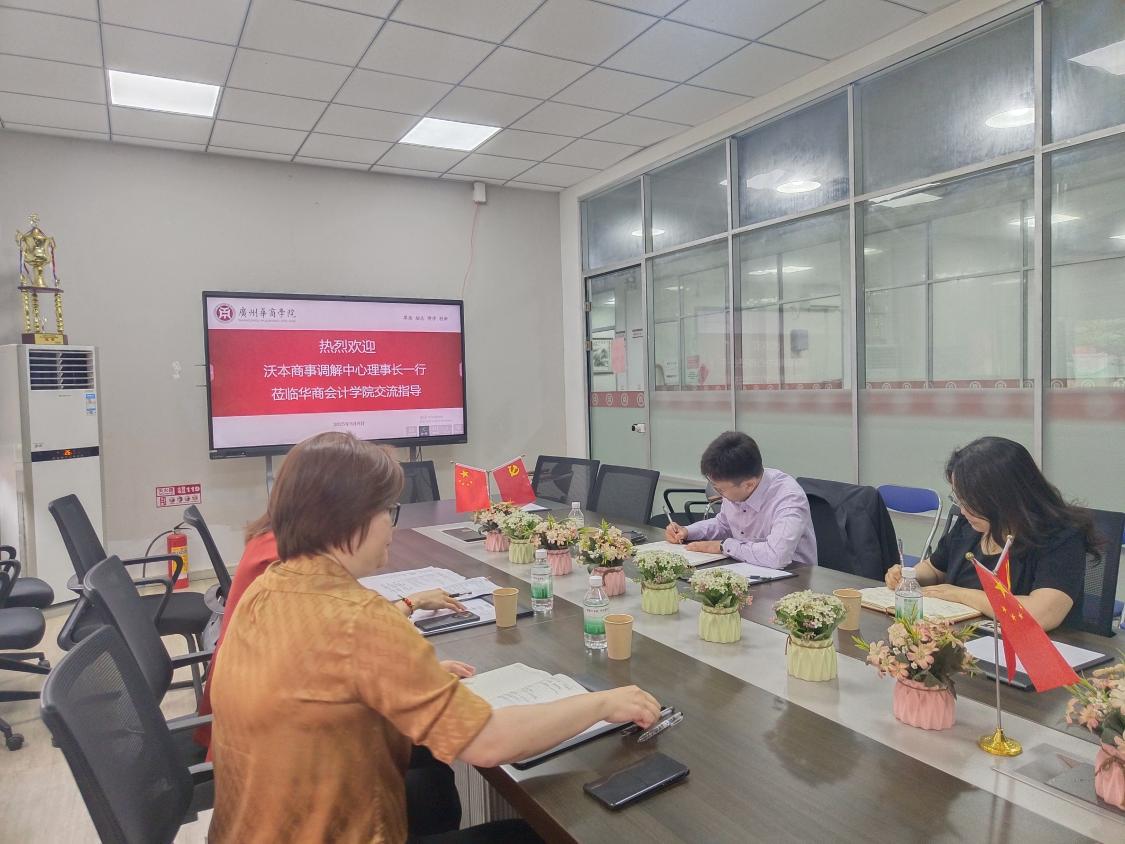 华商科教集团高级总监黄晓刚、beat365在线体育官网登录入口院长助理兼数智会计与商务服务产业学院执行院长陈蒙梦与中审华会计师事务所高级合伙人曾丽群、程斌就工作坊及商事调解等合作意向进行了深度探讨。