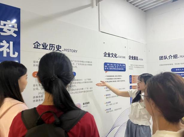 研学活动的最后,事务所人事负责人李晓丽经理带领师生们走进事务所发展长廊,给同学们梳理了事务所发展历史。李经理还带领师生们走进办公区,给同学们介绍审计的日常工作。