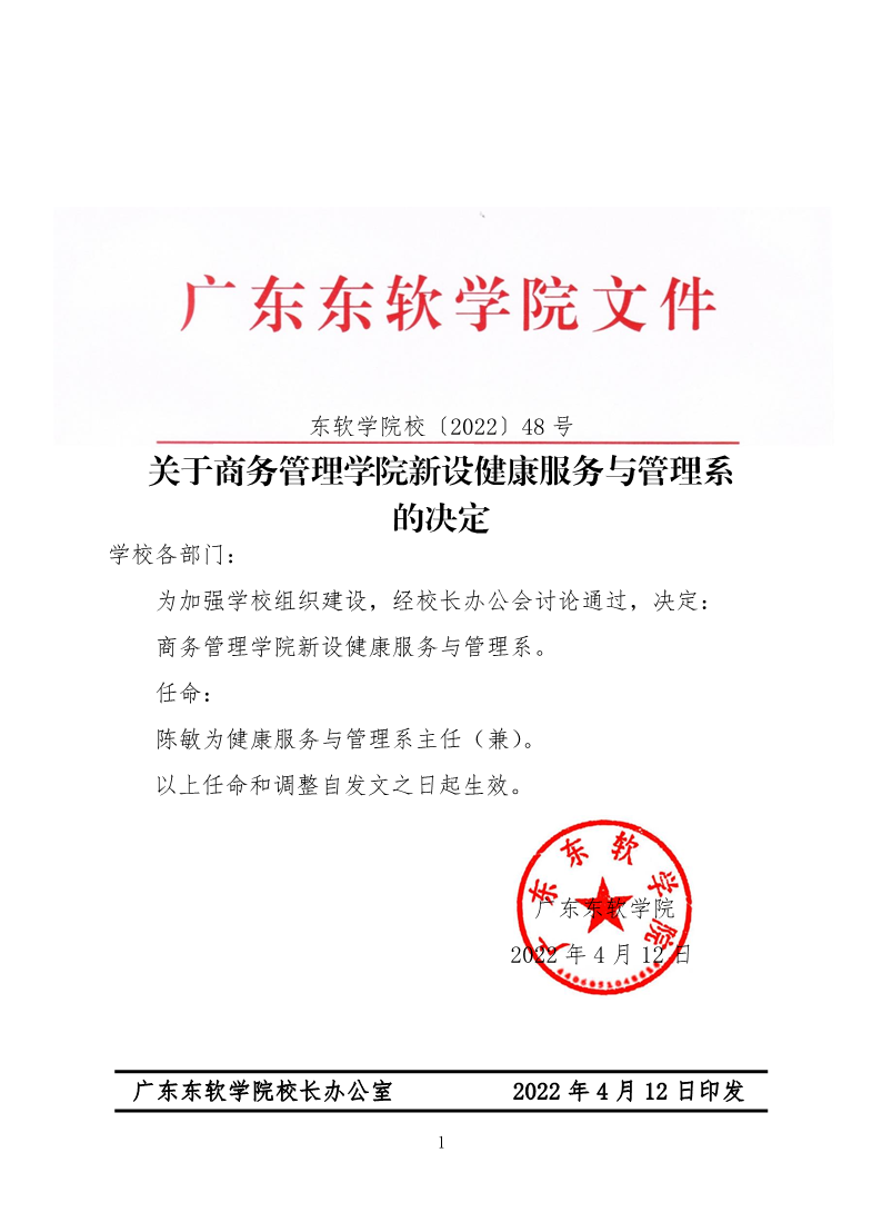 关于成立商务管理学院健康服务与管理系的决定