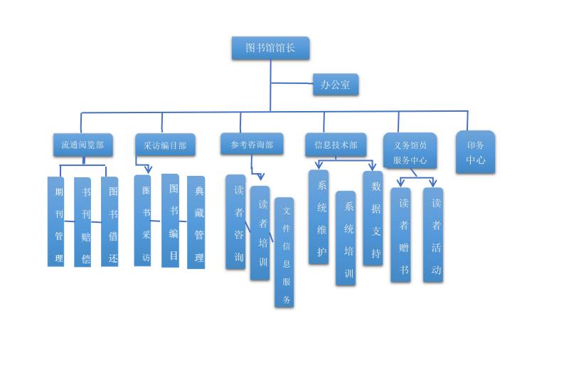 组织结构 发布时间:2022年12月23日 来源: 作者: 浏览次数: 次 【字体:小 大】 beat365中文官方网站图书馆下设馆长办公室、流通阅览部、采访编目部、参考咨询部、信息技术部、义务馆员服务中心、印务中心,共7个职能部门。图书馆组织结构图 分享到: 【打印正文】