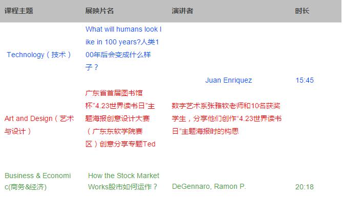 想了解更多的TED顶尖创意分享课堂的展映时间安排,请关注图书馆微信平台。