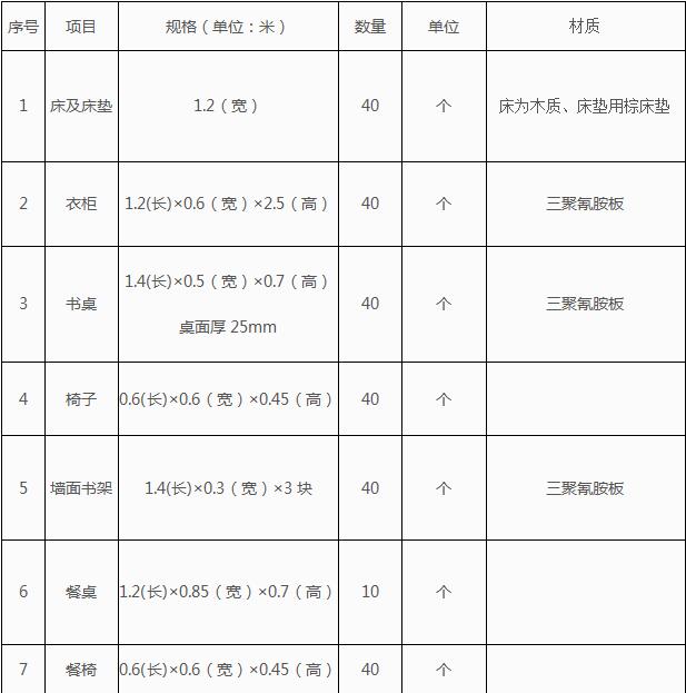 注:家具采购数量按实际签订合同为准。报价包括税费、运输、安装费。