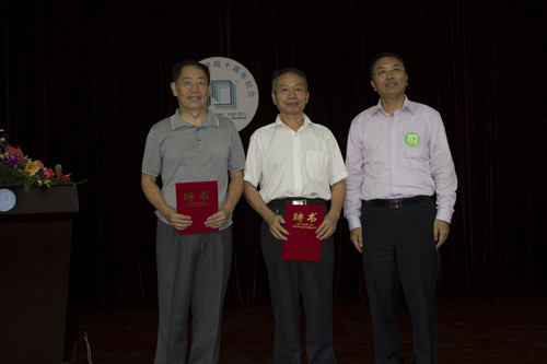 杨利会长向校友会顾问齐志儒、郑若忠教授颁发了顾问聘书。(伍世康 摄)