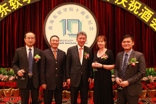 广东省教育厅副厅长魏中林,佛山市南海区区长郑灿儒、政务委员冯政祥,东软集团 董事长、东北大学副校长刘积仁,东软集团高级副总裁卢朝霞,亿达集团副总裁暴洪奎, 国防科技大学计算机学院院长、少将廖湘科,团广东省委常委、学校部部长冯永忠,广东省民办教育协会会长许学强,我院院长杨利,我院党委书记兼省政府督导专员齐志儒,以及佛山传媒集团、佛山市教育局、南海区教育局、狮山镇人民政府、广东金融高新技术产业开发区、南海信息产业投资有限公司、狮山镇经济促进局,国内友好高校、中学,港台及海外高校,合作企业,校友代表出席庆典仪式。