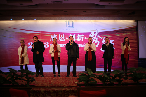 本网讯(记者一湄 罗修坤)龙年共庆辉煌日,蛇岁同奔锦绣程。1月8日晚,我院全体教职员工欢聚在灯火辉煌的南海狮山雍景湾酒店,举行盛大的新年联欢晚会,分享一年中在工作和生活中的收获,以崭新的姿态、精彩的节目和美好的祝福迎接新的一年的到来。