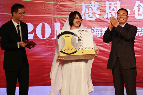 其间,又穿插了精心准备的抽奖环节,大家的积极性一浪高过一浪,欢歌笑语绕梁不息,笑声掌声连一片。演唱《渡情》的是“穿越”而来的“白素贞”与“许仙”,“白素贞”一举将当晚的一等奖拿下,将奖品智能清洁机器人带走。据主持人介绍,奖品之所以选择智能清洁机器人,正是出于我院的IT教育背景。