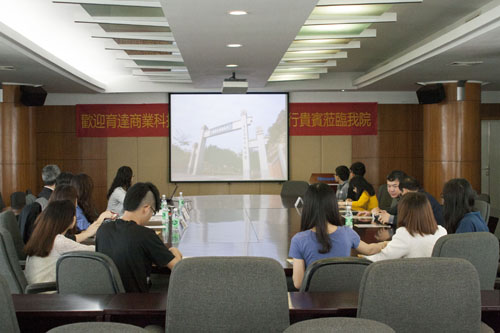 会议现场播放了育达商业科技大学宣传片,影片中反应了我院学子在该校的研修和生活的情况,从学生抵台走出机场开始,到日常学习、生活、游玩的点点滴滴,再到学校为我院学子举行欢送餐会,无微不至。