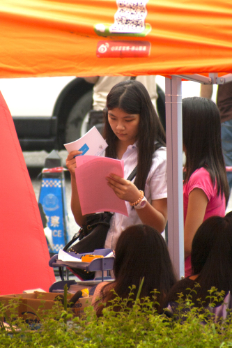 在现场,有学生家长想进一步了解我院成人大专教育的特色,志愿者李红月正在热情讲解,成人大专是我院与众多知名企业合作实施的名校加名企,定向培养的教育模式。我院按委培单位需求研发教学计划和课程体系,把企业的需求及最新技术与教学结合起来,采用面授、视频、教授讲座、案例分析、计算机模拟、小组讨论、名企大讲坛等教学形式,培养既有专业知识,又有实际操作能力,综合素质强调实用型、创新型、创业型、德才兼备的复合型人才。学制3年,第3年下半年参加带薪实习,毕业时可以同时拥有毕业证和技能证双证。