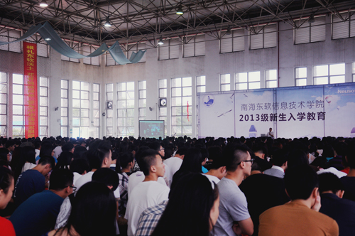 本网讯(记者 李惠旋)9月9日,是2013级新生开学的第一天,我院隆重举行了新生入学教育,院长杨利博士为900余2013级名新生开讲大学第一堂课。与往常不同的是,今年杨利院长把这“第一堂课”浓缩成了一个简短的演讲,在演讲中院长如数家珍般的讲述一个个“明星”学子的成长轨迹,并在随后的时间里,把舞台让给这些“明星”们,让他们将自身在东软的成长经历分享给新生。