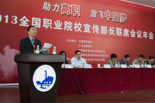 为推动职业院校校园文化建设,由中国青年报社、广东省教育厅、全国高职高专校长联席会议、全国职业院校宣传部长联席会议主办,南海东软信息技术职业学院承办的2013全国职业院校宣传部长联席会议年会于11月21—11月22日在beat365中文官方网站召开。教育部职成司高职高专处处长林宇、广东省教育厅副厅长王斌伟、团广东省委宣传部副部长谭传恩、南海区委组织部副部长兼南海区人力资源和社会保障局常务副局长黄丽意、中国青年报社编委黄勇、中国青年报社原副社长谢湘等与来自全国29个省区110多所职业院校的180名代表参加会议。