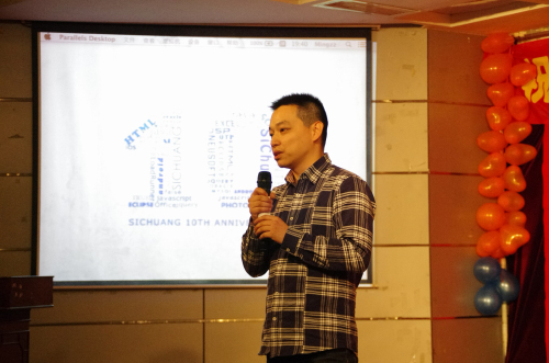 SOVO思创公司指导老师植挺生首先发表致辞,他回忆了这些年与员工们在一起工作的点滴回忆,感谢十年来历届员工们的不懈努力,是员工的付出才造就了公司今天的成就,他同时也期待公司能有更加辉煌的下一个十年。现任思创公司V-CEO邵广林同学接过植老师的话题,他说:“员工们一起做项目的回忆有苦涩也有甜蜜,但是没有什么能够阻挡思创人勤于思考,敢于创新的拼搏精神”。