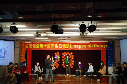 本网讯(记者 陈亨彦)12月20日,SOVO思创公司在BG06报告厅举行公司成立十周年庆祝晚会,公司员工齐聚一堂,祝贺公司“生日快乐”。