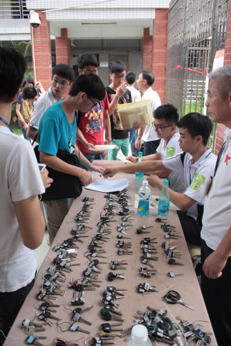 新生在领取宿舍钥匙