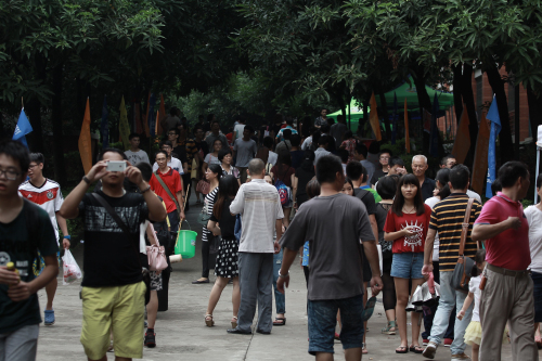 校园里熙熙攘攘的新生及家长