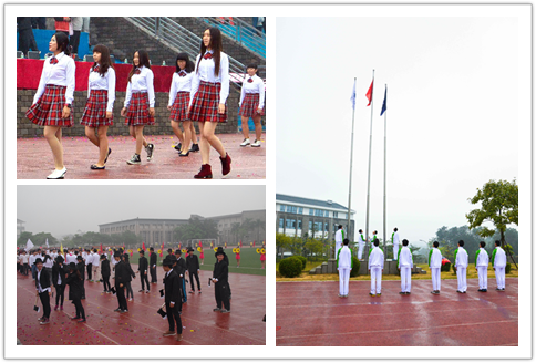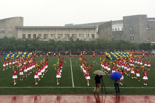 第十届校运会雨中开幕 学子身着“韩流风”校服登场