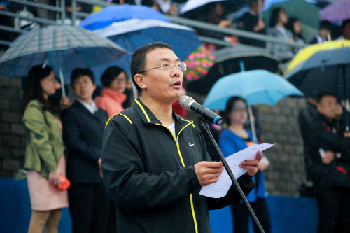 “鹭鸟高飞处,喜见好秋雨!”杨利院长在致开幕词时这样描述这场不一样的校运会开幕式,站立在雨中致词的他提了三个关键词“新起点”、“新成绩”、“新希望”。他说:“本届校运会是学院升格为本科院校后的首届体育盛会,具有里程碑式重要意义,参与本届校运会的老师和同学们的精神风貌和优异表现,将在学院发展史册上留下光辉一页。”杨院长引用著名哲学家洛克的话“健全的人格寓于健康的体格”,告诉同学们没有健康的身体素质将无从适应大时代的要求,学院非常关注同学的全面发展,希望大家无论在考场上、职场上还是在运动场上都有能力承担勇攀高峰的责任。校运会的举办是学院实施“五元能力”发展计划,全面落实素质教育的具体行动。他衷心希望体育健儿们奋勇争先、再接再厉,赛出水平,赛出友谊,赛出风格。