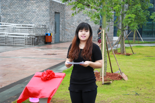 院长杨利发表致辞,杨利称2015届毕业生在校的三年正是我院发展史上最重要的三年,同学们见证、经历了建校10周年庆典、专升本评估、学院获批升本等学院重大事件,他感谢2015届同学们在过去三年为学院发展做出的贡献。杨院长非常赞赏同学们用种植毕业纪念林的方式寄托对母校的思念,“毕业林是你们留给学校的纪念,也是你们在学校留下对自己成长的纪念,我相信在若干年以后,当你们看到你们亲手栽下的这片树林,能够找到你们对大学的回忆”。他希望毕业纪念林情牵学校和同学们,他说:“不管你们漂泊多远,你们的根永远都在这里,希望你们在工作之余携亲人常回校看看,这里有你们青春的记忆。”