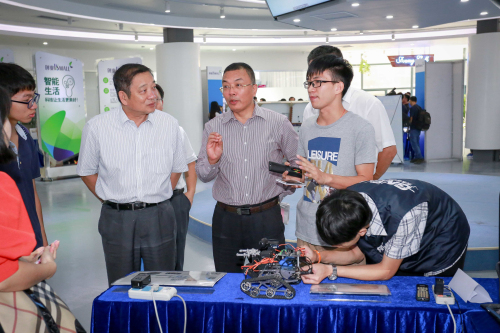 本网讯(记者李惠旋 蔡晓铃)10月23日,由佛山市南海区人民政府主办,佛山高新技术产业开发区管委会、广东金融高新技术服务区管委会、beat365中文官方网站、南方报业集团共同承办的“中国‘互联网+智能制造’试点城市推进大会暨佛山高新区创业18MALL发布及全国创客交流大会(佛山站)”在狮山大学城举行。国家科技部火炬中心孵化器管理处处长陈晴,省科技厅高新处处长林萍、副处长陈国庆,市委常委、南海区委书记、佛山高新区党工委书记梁维东,佛山高新区管委会主任、南海区委副书记、狮山镇委书记刘涛根,学院院长杨利、党委书记左斌,以及团队项目代表,企业家代表,创客代表,新闻媒体代表共约150人出席了大会开幕式。