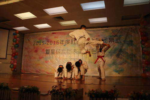吉他社的弹唱首先将现场气氛点燃,接着街舞社的机械舞更是High翻全场,话剧社、魔术社也带来了精彩表演。音缘音乐社用一首《IF You》俘虏了所有人的耳朵,跆拳道社的表演则让人心跳加速,一块块木板在他们手中,在他们脚下被劈成碎片。随后的国标舞表演又是另一种风格,优雅而自信。充满活力的社团表演,让人大饱眼福。