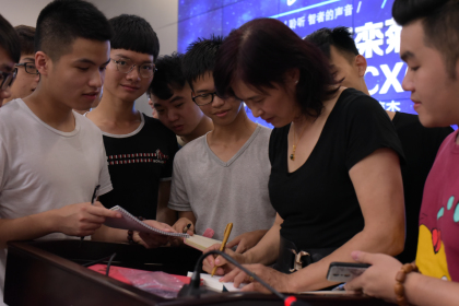 在讲堂结束后,现场的同学们争相上台索取栾菊杰签名和合照。曾参加过击剑比赛的王同学表示,“很喜欢栾老师,她的坚韧精神深深打动了我,非常值得我们学习。”