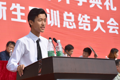 随后,左斌书记发表了热情洋溢的讲话。他首先代表全校教职员工对2017级新生的到来表示欢迎,向辛勤耕耘的教师表示敬意,向圆满完成任务的承训教官表示感谢,他殷切期盼全体新生能够在大学华丽转身,认真规划自己的发展目标,秉承“精勤博学、学以致用”的校训,潜心钻研,持之以恒,让自己成为德才兼备,全面发展的大学生。